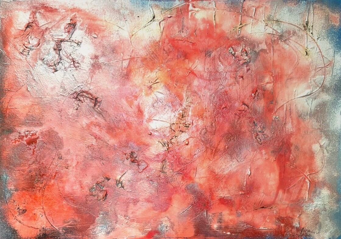 ウッドパネルにアクリルガッシュ 石膏 ティッシュ