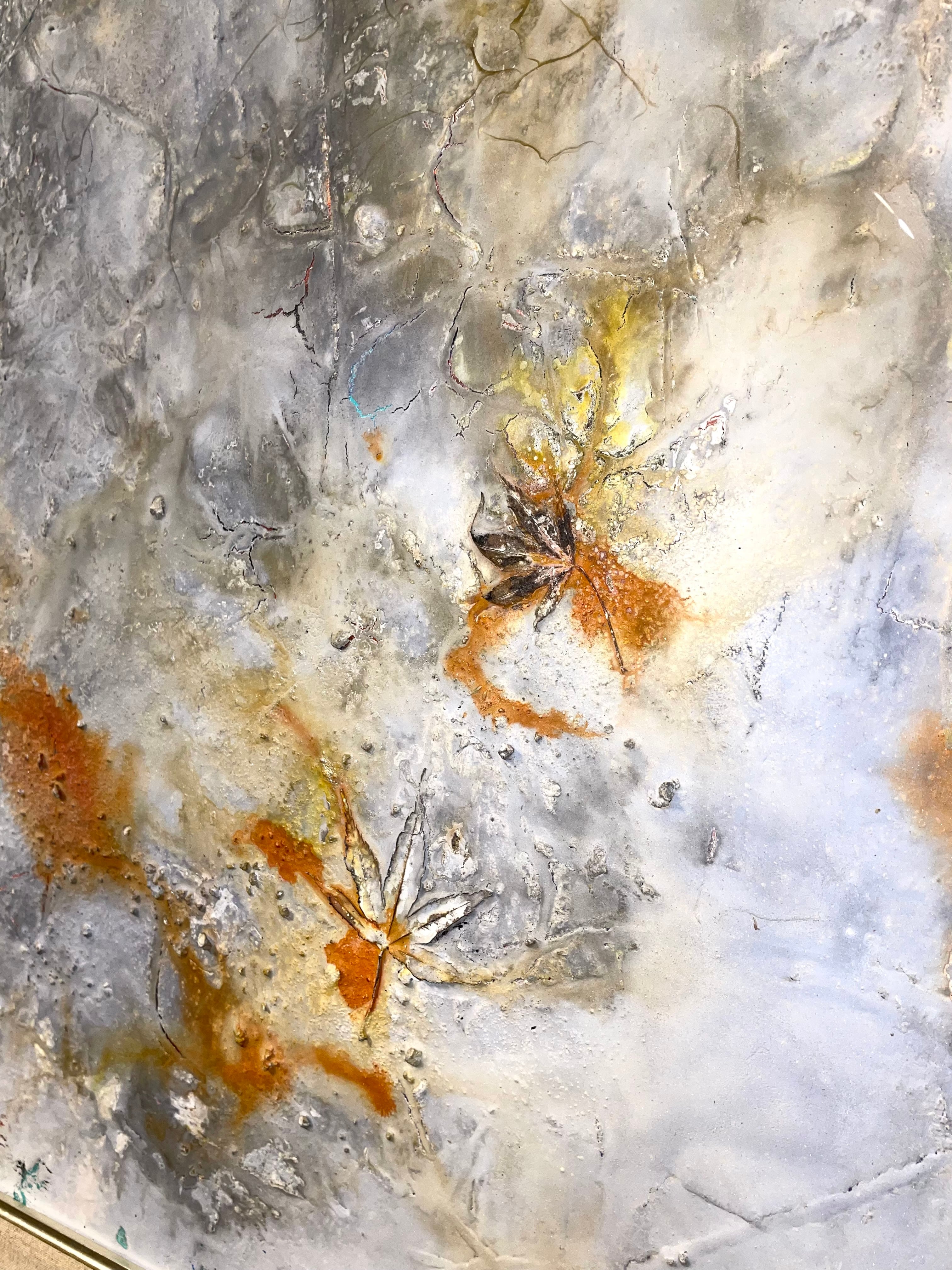 キャンバスにアクリルガッシュ 石膏 紅葉